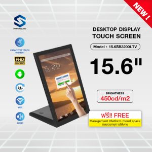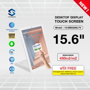 15.6SB3200LTV White • ป้ายโฆษณาดิจิตอลชนิดตั้งโต๊ะสีขาว ระบบทัชสกรีน ขนาด 15.6 นิ้ว ความสว่าง 450 nits
