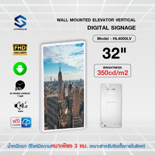 HL4000L – Elevator • ป้ายโฆษณาดิจิตอลสำหรับติดลิฟต์ ขนาด 32 นิ้ว ความสว่าง 350 nits