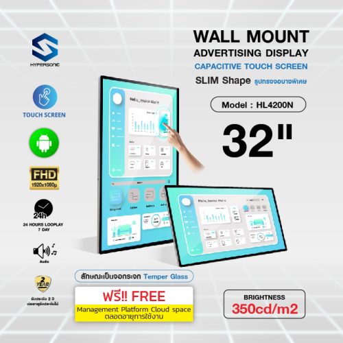 HL4200N • ป้ายโฆษณาดิจิตอลชนิดแขวนผนัง ระบบทัชสกรีน ขนาด 32 นิ้ว ความสว่าง 350 nits