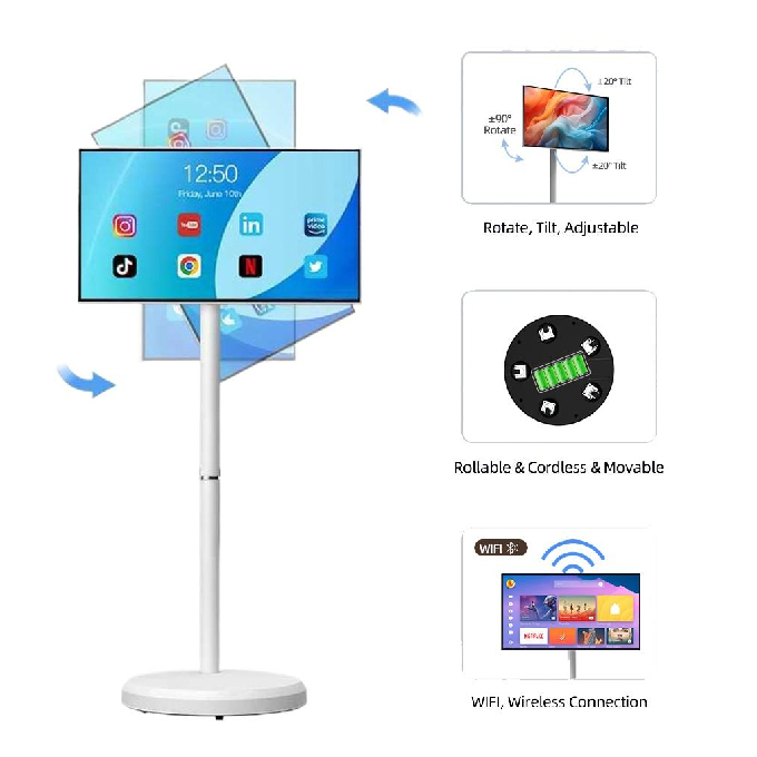• จอภาพระบบสัมผัส ลื่นไหล ตอบสนองแม่นยำพร้อมระบบปฏิบัติการ Android OS มีล้อเลื่อน เคลื่อนย้ายสะดวก มีแบตเตอรี่ในตัวใช้งานได้ทุกที่