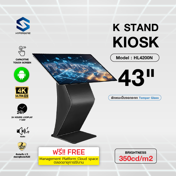 43HL4200N K Stand • ป้ายโฆษณาดิจิตอลตั้งพื้นสีดำ ระบบทัชกรีน ขนาด 43 นิ้ว ความสว่าง 350 nits