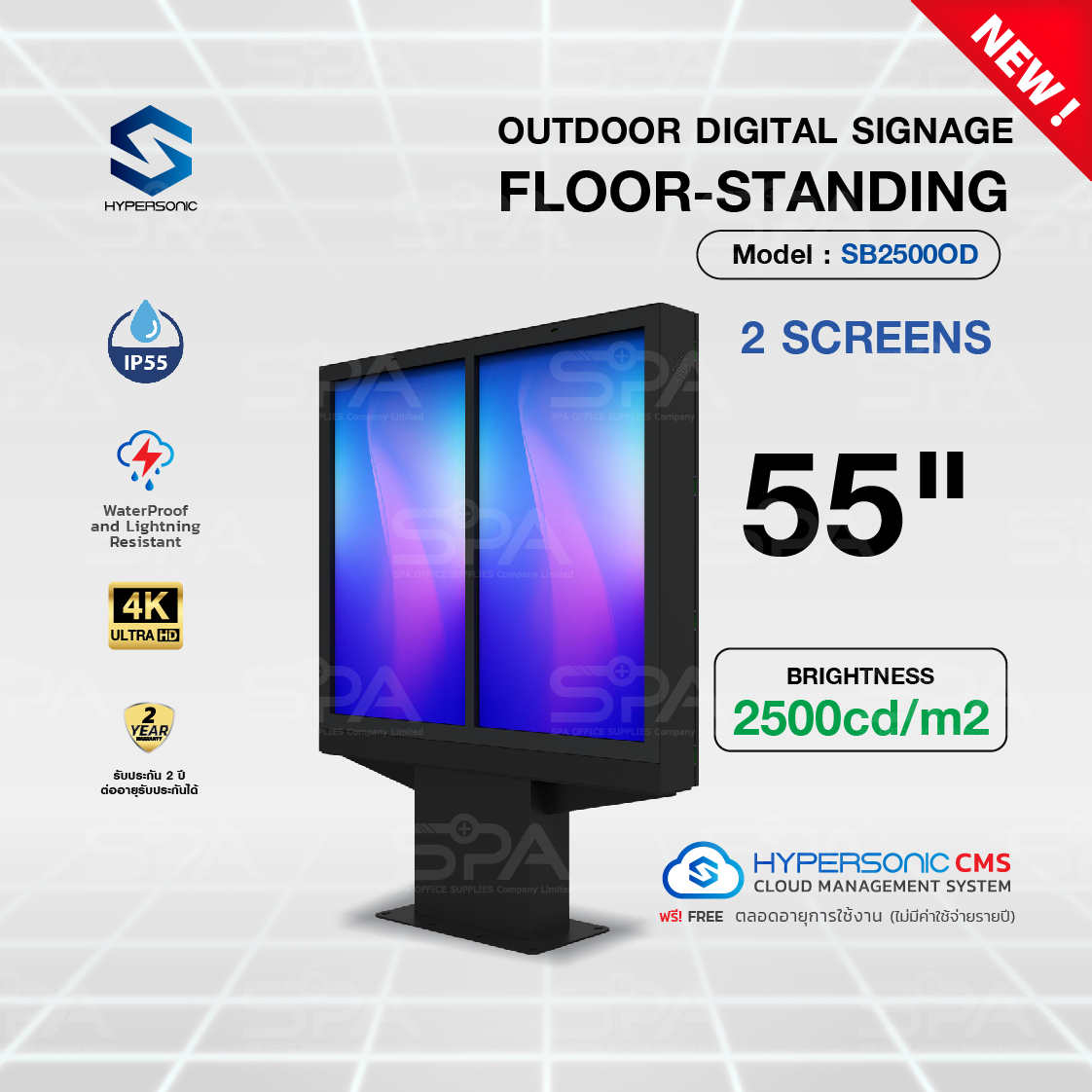 SB2500OD • ป้ายโฆษณาดิจิตอลชนิดกลางแจ้ง 2 จอ ขนาด 55 นิ้ว