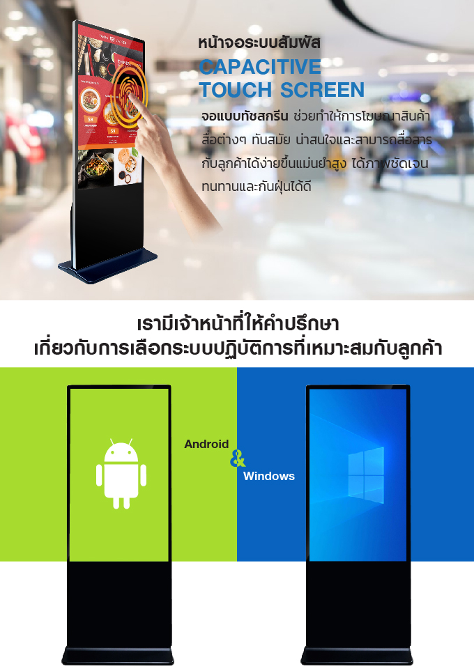 • หน้าจอระบบสัมผัส ลื่นไหลและตอบสนองแม่นยำ เพิ่มความน่าสนใจให้กับสื่อโฆษณา