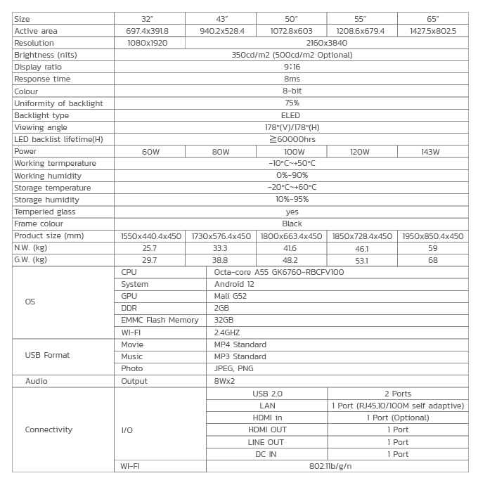HL2200N • ป้ายโฆษณาดิจิตอลชนิดตั้งพื้น ระบบทัชสกรีน ขนาด 65 นิ้ว ความสว่าง 350 nits